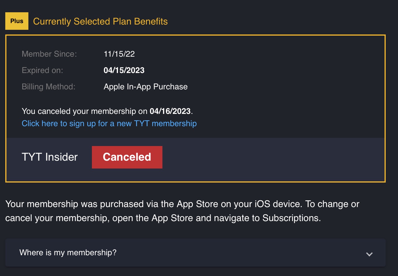 - If you don't have a TYT Plus membership, your status will show NONE and you'll see a link to JOIN TYT PLUS